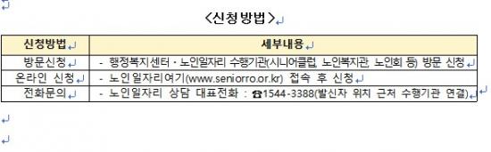 ³ëÀÎÀÏÀÚ¸® »ç¾÷ Á¾·ù´Â ¡ã³ëÀΰøÀÍȰµ¿»ç¾÷(´ë»ó : 65¼¼ ÀÌ»ó ±âÃÊ¿¬±Ý ¼ö±ÞÀÚ, Ȱµ¿½Ã°£ : 1ÀÏ 3½Ã°£, ¿ù 30½Ã°£, Ȱµ¿ºñ: 30½Ã°£ ±Ù¹« ½Ã 29¸¸ ¿ø) ¡ã³ëÀοª·®È°¿ë»ç¾÷(´ë»ó : 65¼¼ ÀÌ»ó(ÀϺΠ60¼¼ ÀÌ»ó Âü¿© °¡´É), Ȱµ¿½Ã°£ : 1ÀÏ 3½Ã°£, ¿ù 60½Ã°£, Ȱµ¿ºñ : 60½Ã°£ ±Ù¹« ½Ã 63¸¸ 4õ ¿ø) ¡ã°øµ¿Ã¼»ç¾÷´Ü(´ë»ó : 60¼¼ ÀÌ»ó, Ȱµ¿ºñ ¹× Ȱµ¿½Ã°£ : ±Ù·Î°è¾à¿¡ ÀÇÇÔ) ¡ãÃë¾÷Áö¿ø(´ë»ó : 60¼¼ ÀÌ»ó, ¼ö¿äó ÀÏÀÚ¸® ¿¬°è)ÀÌ ÀÖ´Ù.